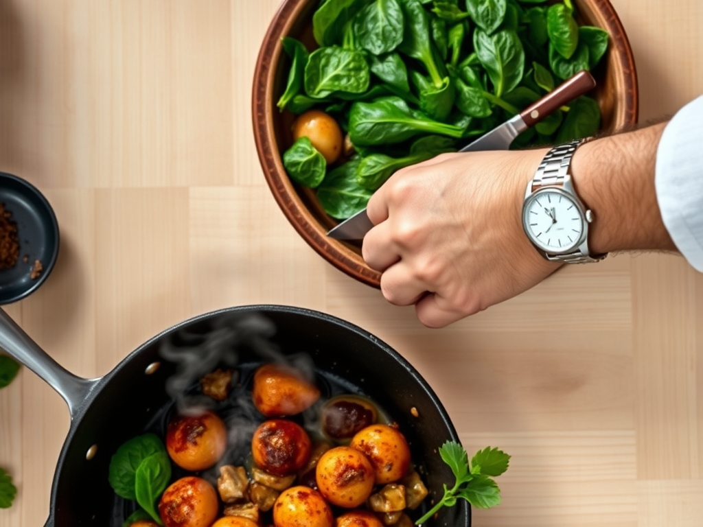 Cook (20-30 Minutes): Potatoes take the lead here. Whether you are boiling, roasting, or pan frying, they need a head start. Spinach only requires 60 to 90 seconds of thermal exposure to reach its peak vibrant green state. If you add them too early, the chlorophyll degrades into a dull olive drab.